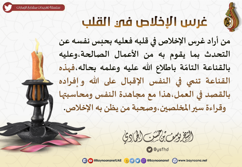 غرس الإخلاص في القلب تاريخ الإضافة: الإثنين, 16/12/2019 - 20:04 التصنيفات الشيخ: يوسف بن حسن الحمادي