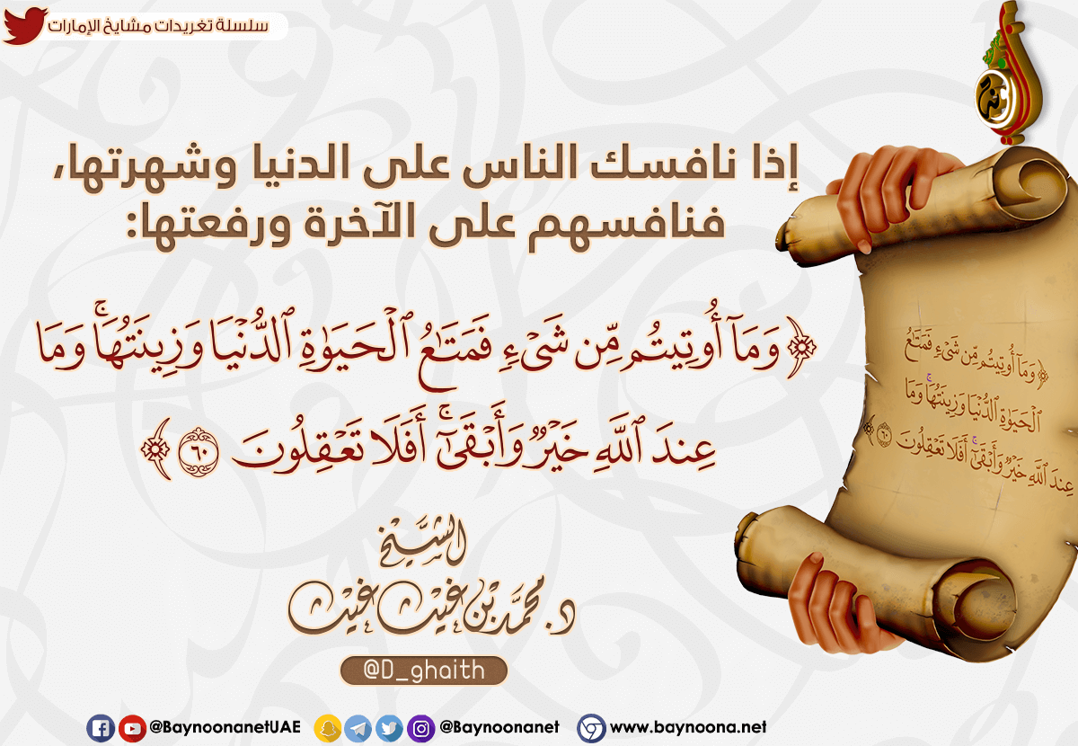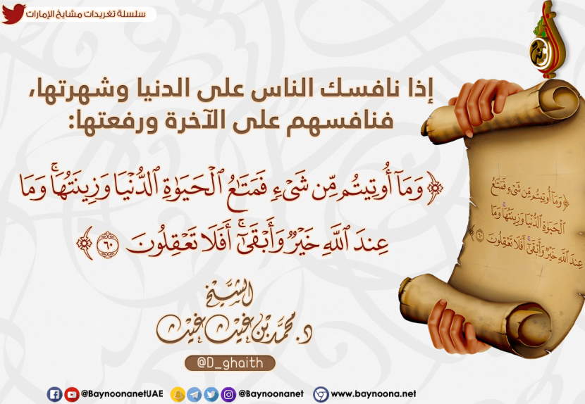إذا نافسك الناس في الدنيا ... تاريخ الإضافة: الثلاثاء, 03/03/2020 - 20:50 التصنيفات الشيخ: د. محمد بن غيث غيث