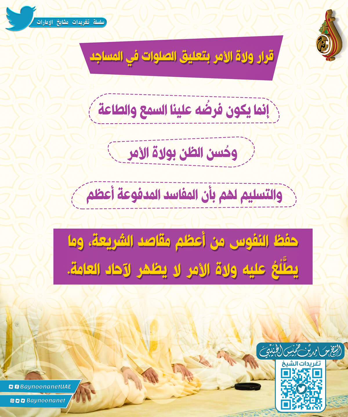قرار ولاة الأمر بتعليق الصلوات في المساجد تاريخ الإضافة: الأربعاء, 18/03/2020 - 15:55 التصنيفات الشيخ: حامد بن خميس الجنيبي