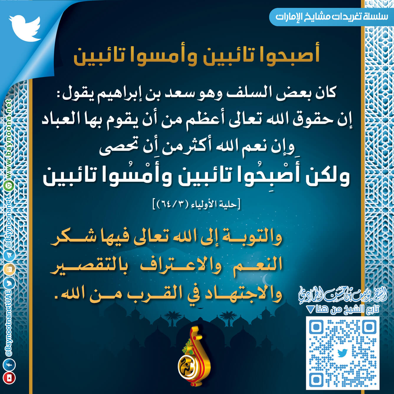 أصبحوا تائبين ، وأمسوا تائبين تاريخ الإضافة: السبت, 20/06/2020 - 14:25 التصنيفات الشيخ: يوسف بن حسن الحمادي