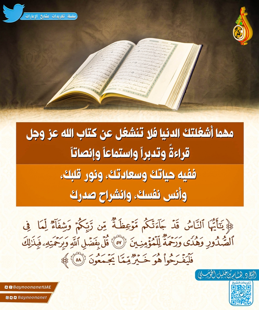مهما أشغلتك الدنيا فلا تنشغل عن كتاب الله عز وجل تاريخ الإضافة: السبت, 05/12/2020 - 17:20 التصنيفات الشيخ: د. هشام بن خليل الحوسني
