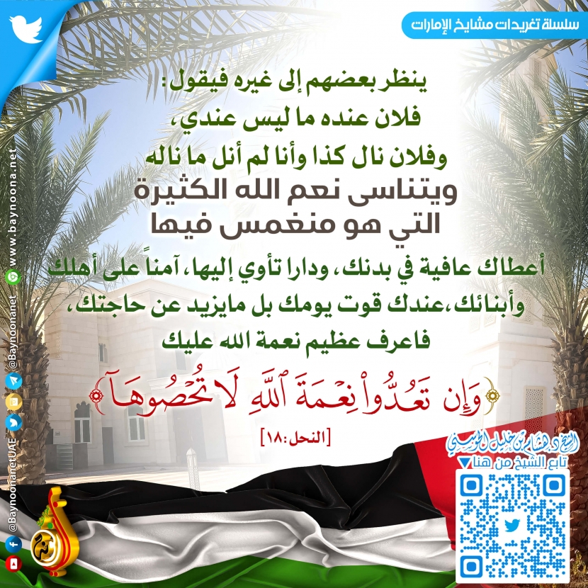 ينظر بعضهم إلى غيره فيقول: فلان عنده ما ليس عندي ، وفلان نال كذا ... تاريخ الإضافة: الخميس, 11/03/2021 - 00:24 التصنيفات الشيخ: د. هشام بن خليل الحوسني