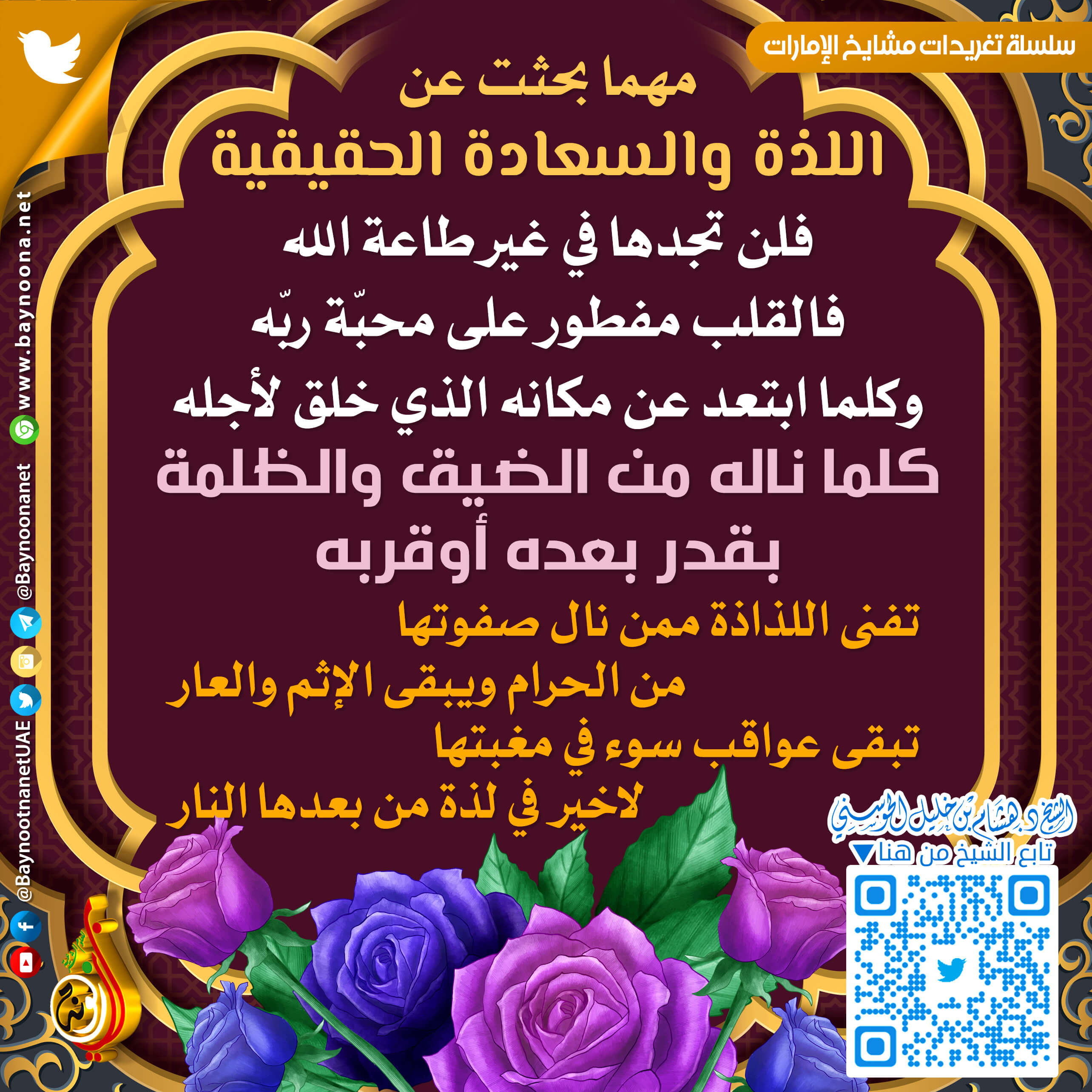 مهما بحثت في اللذة والسعادة الحقيقية فلن تجدها في غير طاعة الله ... تاريخ الإضافة: الإثنين, 20/09/2021 - 14:02 التصنيفات الشيخ: د. هشام بن خليل الحوسني