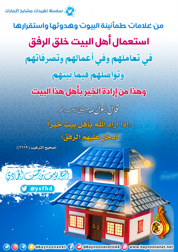 من علامات طمأنينة البيوت ... تاريخ الإضافة: الأربعاء, 13/10/2021 - 00:24 التصنيفات الشيخ: يوسف بن حسن الحمادي