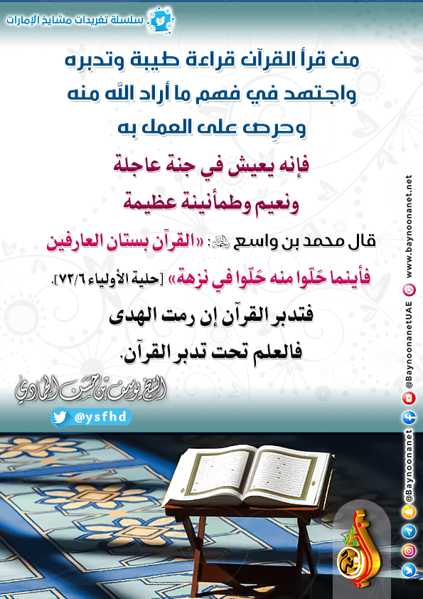 من قرأ القرآن قراءة طيبة وتدبره ... تاريخ الإضافة: الأحد, 16/01/2022 - 20:26 التصنيفات الشيخ: يوسف بن حسن الحمادي