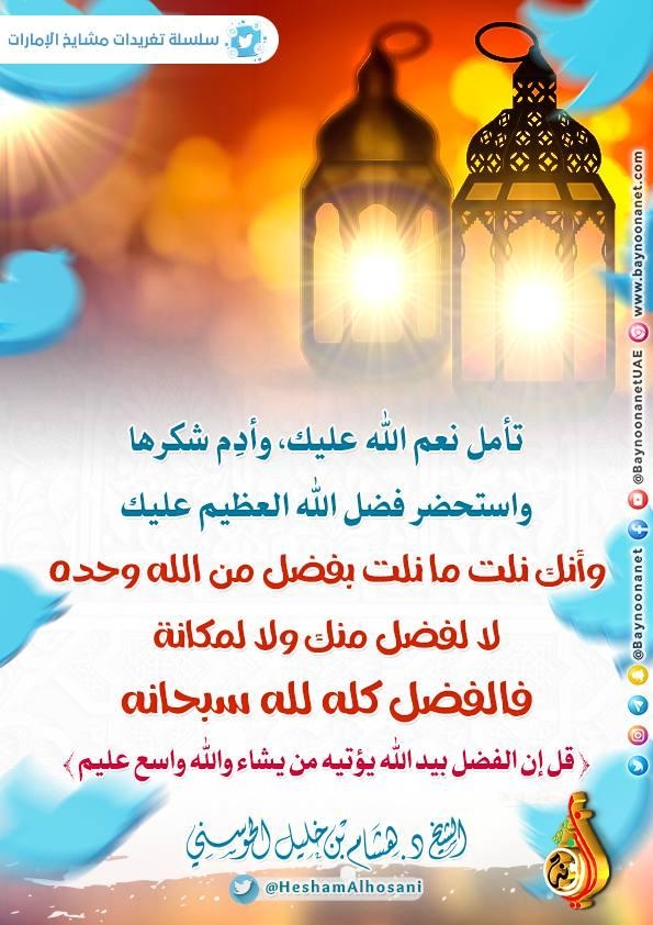 تأمل نعم الله عليك، أدم شكرها ... تاريخ الإضافة: الأربعاء, 14/09/2022 - 22:12 التصنيفات الشيخ: د. هشام بن خليل الحوسني