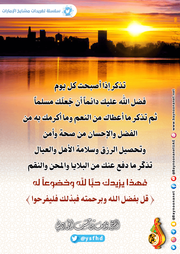 تذكر إذا أصبحت كل يوم فضل الله عليك دائما ... تاريخ الإضافة: السبت, 24/09/2022 - 20:30 التصنيفات الشيخ: يوسف بن حسن الحمادي